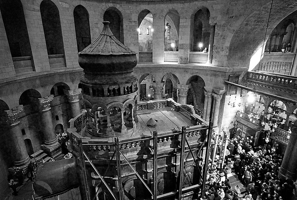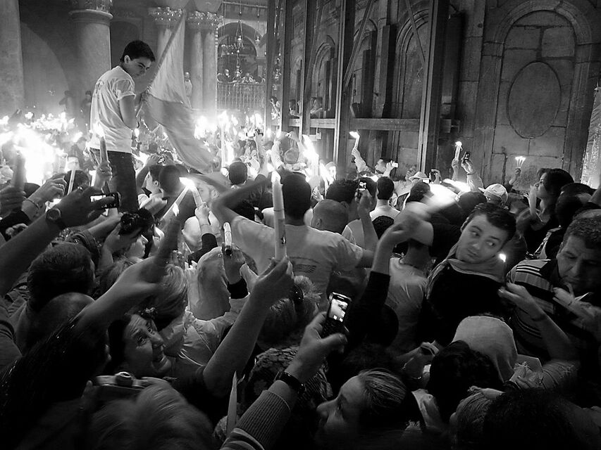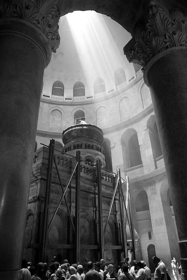 The Holy Sepulchre, eller på svenska "Den Heliga Gravens Kyrka" är en kristenhetens kanske heligatse plats. Här samsas katoliker med ortodoxa, armenier, kopter, syrianer och etiopier om en nästan labyrintartad kyrka, ombyggd, återuppbyggd och tillbyggd sedan 300-talet. Påsken är såklart central i kyrkans liv, det var ju här som det hela utspelade sig. Mest spektakulärt är de ortodoxas påskfirande med den heliga eldens mässa på påskaftonen. Mer än 12000 pilgrimer trämngs i kyrkan som rymmer 10000 och bara har en trång in/utgång.